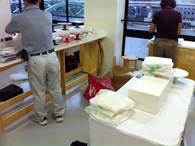 ご購入くださったのは、ラインストーンを使ったアクセサリーを製作・販売されている、少し前に起業家支援関連施設の交流会で出会い、意気投合した女性。エレガントで素敵な方で、わたくしイチオシの組み合わせのポルカドットのケーキスタンドとアクセサリースタンドを、ご自身の作品を飾るためにご購入くださいました。こうゆう出会い、本当にありがたいと身にしみるのであります。