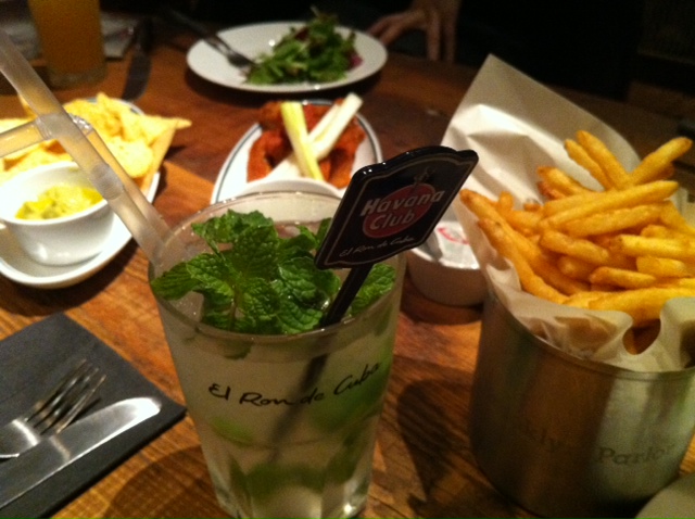 モヒートにフレンチフライやバッファローウィングなどアメリカンなつまみで、仕事の話→旅行など趣味の話→いつしか恋バナ→ヒミツ☆