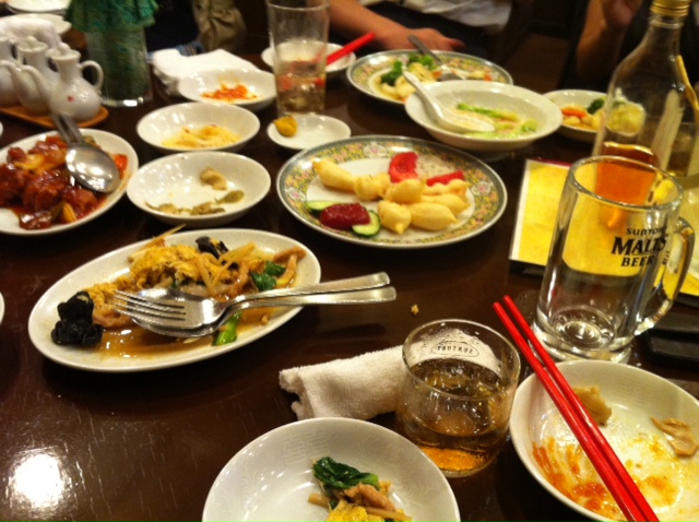 終了後は、講師の方と、実務補習の恩師S先生率いる研修部員と有志の先生方で、中央支会事務所近くの中華料理店で懇親会。