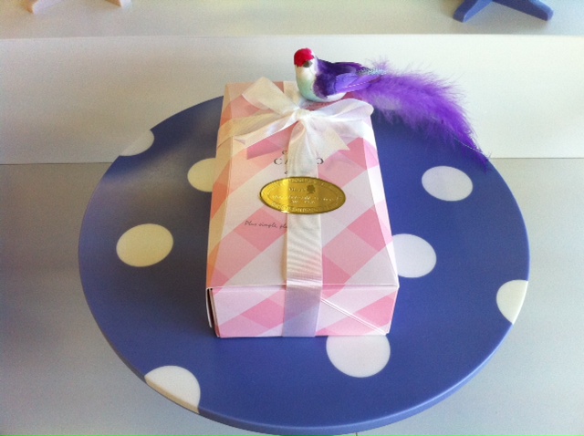 ご購入くださったのは、ラインストーンを使ったアクセサリーを製作・販売されている、少し前に起業家支援関連施設の交流会で出会い、意気投合した女性。エレガントで素敵な方で、わたくしイチオシの組み合わせのポルカドットのケーキスタンドとアクセサリースタンドを、ご自身の作品を飾るためにご購入くださいました。こうゆう出会い、本当にありがたいと身にしみるのであります。