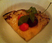 全粒粉のクレープ ナッツとマスカルポーネのクリーム&ベリーソース添え。生ナッツっぽいさくさくした歯触りが新鮮。