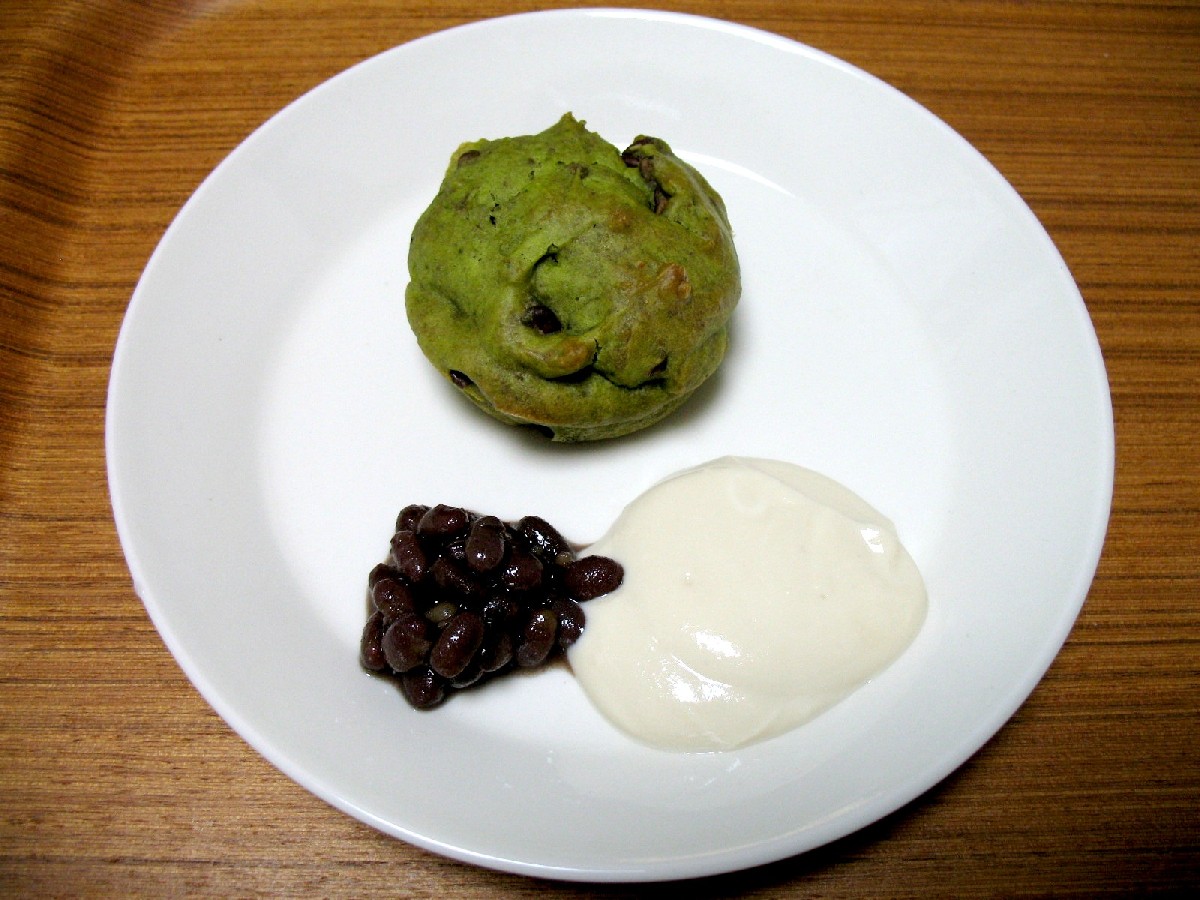『もっちりシフォンさっくりクッキーどっしりケーキ―オーガニックなレシピノート』のマフィンのレシピを参考に、抹茶と先日煮たあずきでアレンジ。