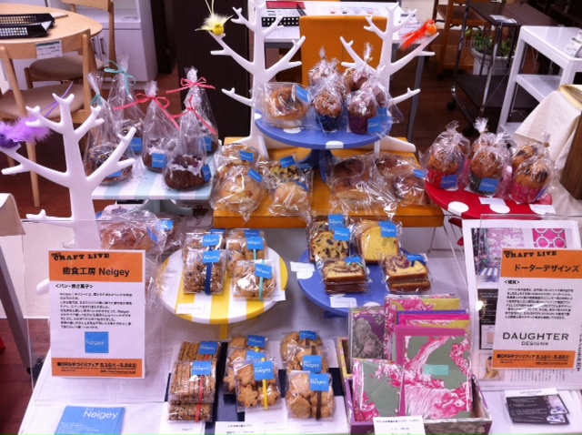 スペース(80cm x 90cm for 2。狭っ)、什器(製作余力、運搬能力)、POP(用意された共通のもの、ちょっと場所取るのよね…)などの制約の中で最善を尽くすべく、試行錯誤。