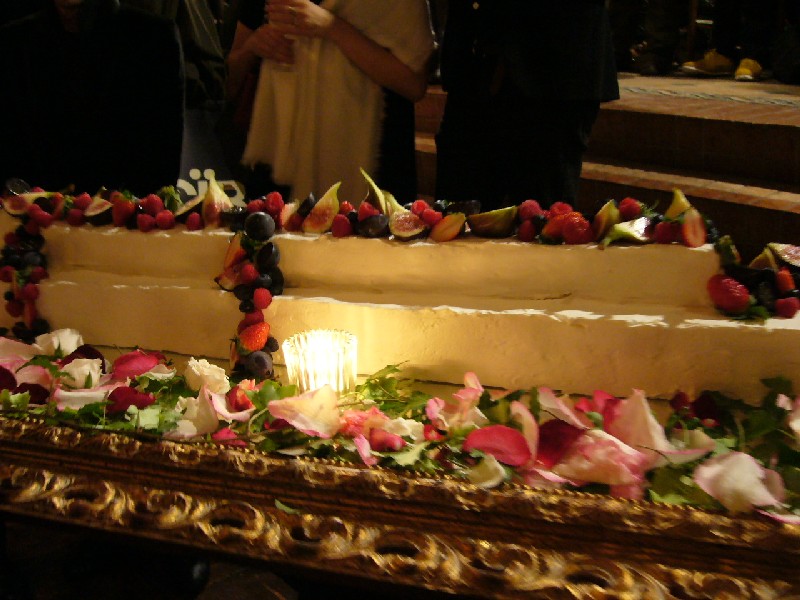 写真は、長さ2mはありそうな巨大なアンティークフレームに載せられたウェディングケーキ。中はいちごのコンフィチュールがサンドされたスポンジで、クリームもさっぱりした甘さでおいしかった♪