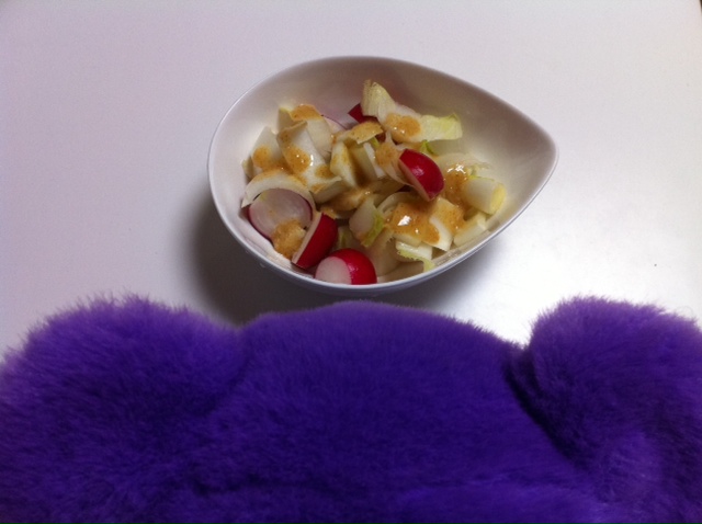 チコリとラディッシュのサラダ ボッタルガソース添え